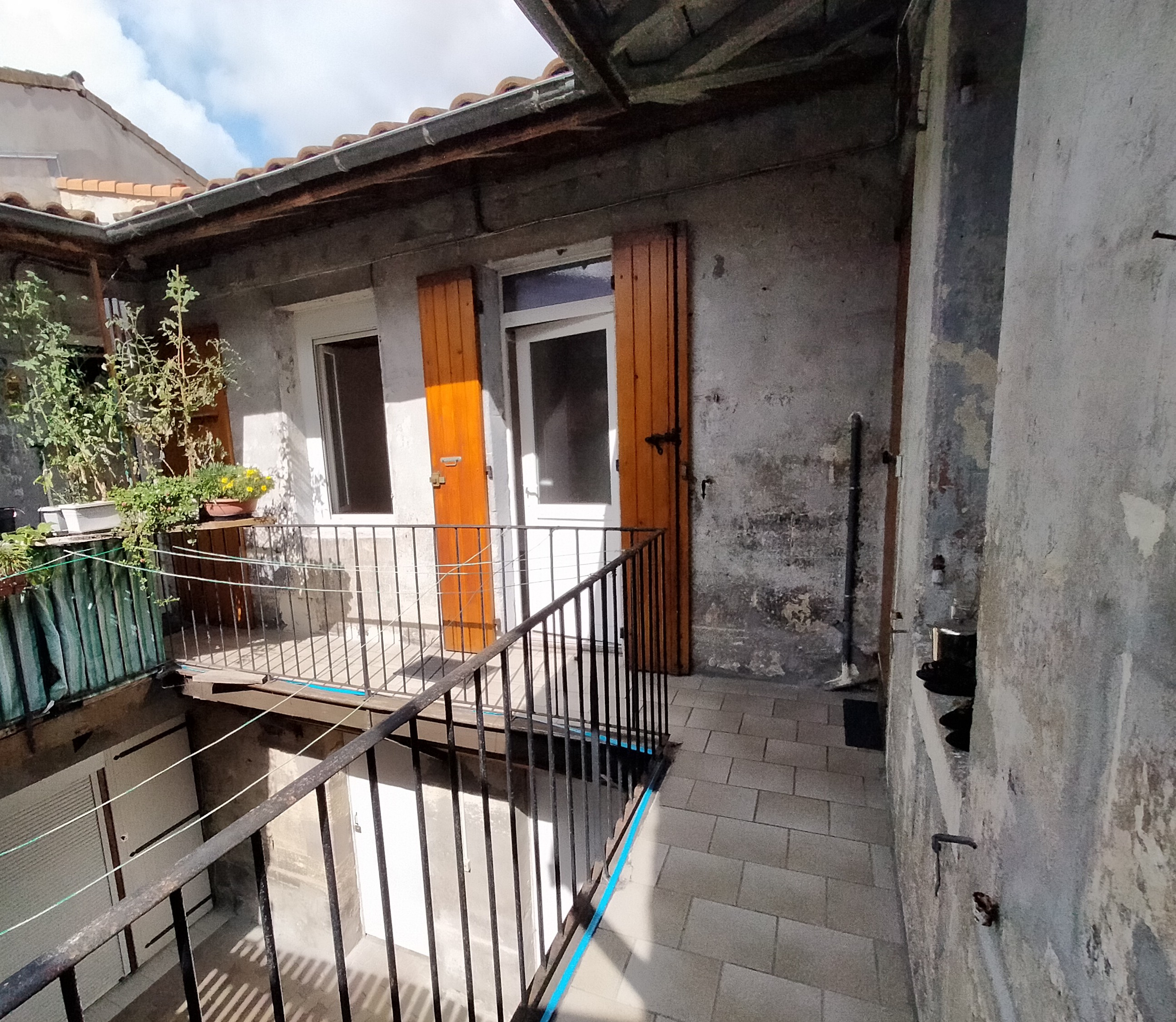 Localisation du mini studio : au 1° étage (vieil escalier en pierre)